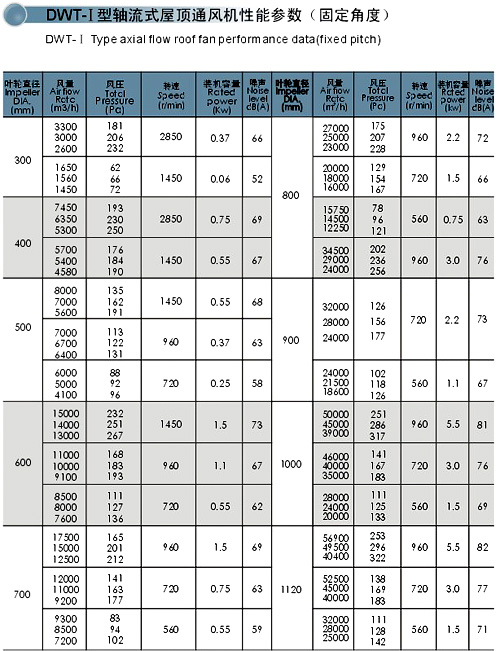 | DWT系列屋頂式通風機是國家經貿委“雙加工程”的大型技改項目,已列入國家級“星火”計劃,獲得國家實用性新型專利。本系列風機具有規格形式多、應用范圍廣、效率高、噪聲低、質輕、高強度、耐腐蝕、運轉平穩、壽命長、外型美觀等眾多優點。 該類風機廣泛應用于發電廠、化工廠、橡膠廠、機械制造等車間和高級民用建筑的送、排風;如:廣州電廠、廣東惠州電廠、廣東中山電廠、廣東佛山電廠、廣東汕頭電廠、廣東陽江電廠、深圳馬灣電廠、大亞灣核電廠、珠海發電廠、四川綿陽電廠,孟加拉國吉大港電廠等三十多個國家發電廠。 本系列屋頂風機共分三大類:①軸流式屋頂風機(DWT-I),直徑自Φ300-Φ2400mm,共十七種機號;②離心式屋頂風機(DWT-Ⅱ),有Φ300-Φ1000 mm九種機號;③混流式屋頂風機(DWT-Ⅲ),直徑自Φ280-Φ800 mm,共十種機號,還可根據用戶需要提供其它機號風機。 |